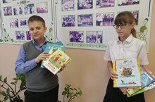 Учащиеся 4г класса Власова Арианна и Чернышов Дима приняли активное участие в школьной акции "Подари книге вторую жизнь"