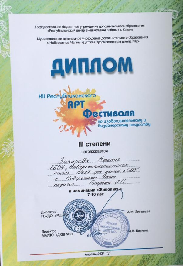 Поздравляем ученицу 4г класса Закирову Афелию, ученицу 7а класса Гайфуллину Карину с победой в Республиканском арт-фестивале по изобразительному и дизайнерскому искусству. Молодцы!