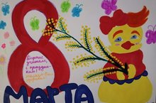 Учащиеся 4б класса дружно нарисовали плакат к празднику 8 Марта.