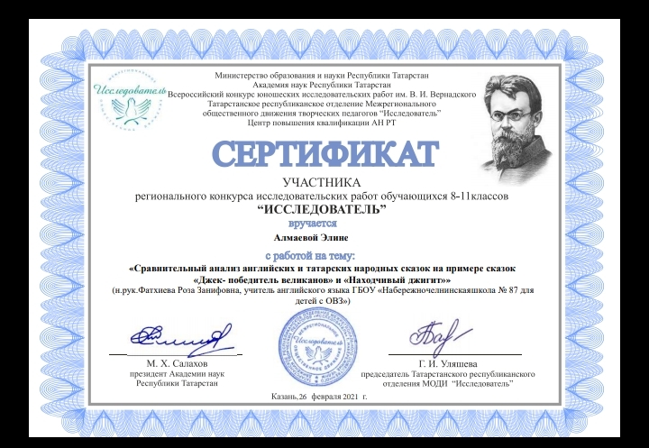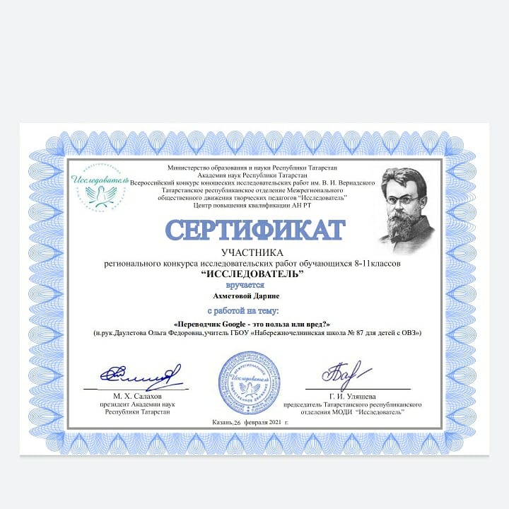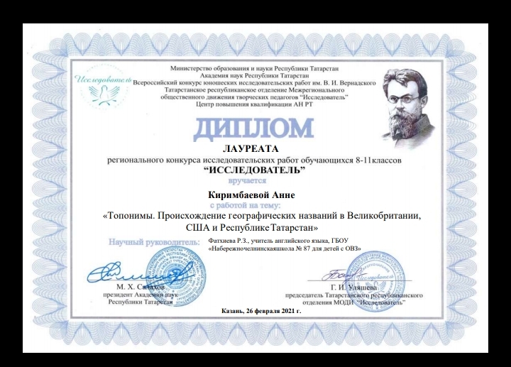 1 марта учащиеся 9 и 10 классов приняли участие региональном этапе всероссийской конференции им. В.И. Вернадского по секциям "Английский язык" и "Информатика" на платформе zoom. Победителем - 3 место является Киримбаева Анна, лауреатами - Алмаева Элина, Сафиуллин Артур и Ахметова Дарина.