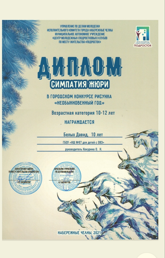 Поздравляем учеников 3 класса за активное участие в конкурсе "НеоБЫКновенный год". Шайхразиеву Алию и Белых Давида. Молодцы, ребята удостоены Диплома " Симпатия жюри".