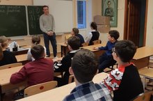В рамках патриотического воспитания прошел классный час с приглашением выпускника школы Аксинина Глеба, вернувшегося из армии. В прошлом году все учащиеся приняли активное участие в акции "Посылка солдату". И ребятам было очень приятно встретиться с солдатом, который пришел их поблагодарить за внимание и поддержку.