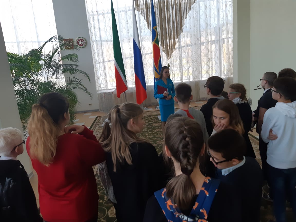 22 октября учащиеся 6 и 7 классов посетили Дворец торжества города. Ведущий специалист Танчулпан Гайнетдинова более подробно рассказала о работе ЗАГСа. Некоторые ученики попробовали себя и в роли регистратора. Организованная фотовыставка вызвала у ребят большой интерес. В конце экскурсии был показан фильм и проведена небольшая проверка знаний.