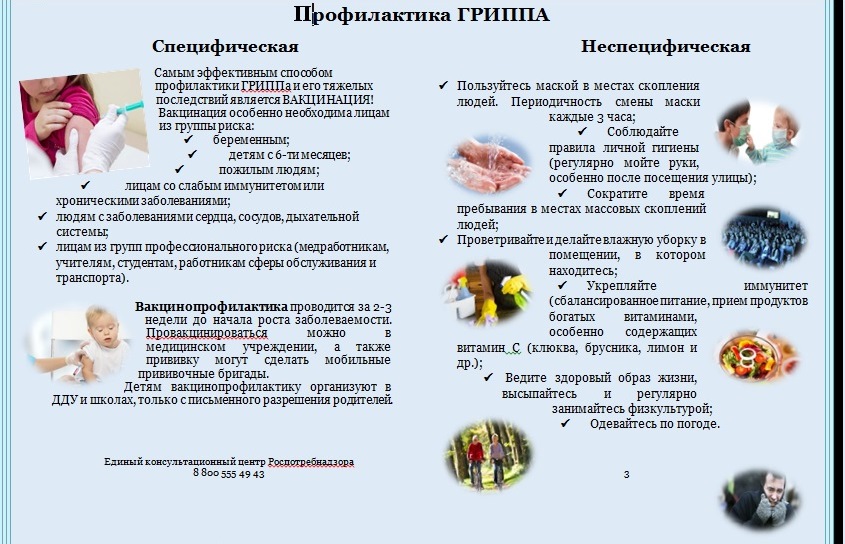 В период эпидемий гриппа старайтесь как можно реже посещать места общественного скопления людей, особенно с ребёнком. По возможности ходите на работу пешком, так как общественный транспорт это источник распространения вирусов, так как в нём много людей, и при этом нет вентиляции воздуха.