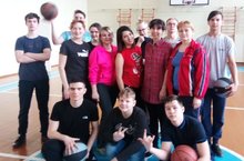 Товарищеский матч по волейболу среди команды учителей и старшеклассников школы.