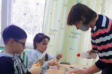 Учащиеся 1 а класса во время каникул посетили мастер-класс "Волшебный цветок" в ДХШ 2.