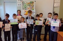 1 б класс. Оформление стенда и выставка рисунков «Эхо войны»