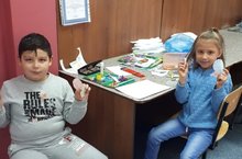 Учащиеся 1б класса на мастер- классе "Бумажные превращения" в ЦДТТ N5