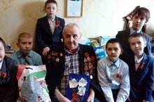 Члены Тимуровского отряда 3б класса "Милосердие" посетили ветерана ВОВ Диева Ивана Илларионовича и поздравили с Днем победы.