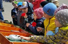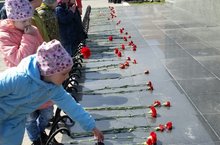 Воспитанники подготовительных групп N 5 и 6 возлагают цветы у мемориала " Родина - мать"