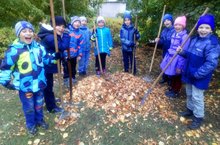 "Осеняя неделя добра" Экологический лесант. Сбор опавшей листвы. Подготовительная группа N 5