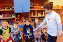 Тимуровский отряд 3б класса "Милосердие" провел вечер загадок и подарили свои "Книжки малышки" воспитанникам дошкольной группы. -