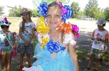 Сегодня провели день бантиков. Дети с удовольствием придумывали костюмы, делали прически из бантиков. Все отряды получили сладкие призы.