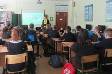 Экологический урок 11.02.2019 В рамках экологического воспитания для учащихся 7б класса организована встреча с представителями Прикамского ТУ МЭПР РТ. Лектором выступил ведущий специалист Прикамского территориального управления Министерства экологии и природных ресурсов Республики Татарстан Владимир Макарович Музафаров.