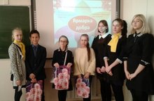 Благотворительная акция 06.12.2018 Школьный совет учащихся совместно с Тимуровским отрядом «Новые тимуровцы» в количестве 15 учащихся во главе с руководителями Гизатуллиной А.Р. и Галихановой М.И. провели благотворительную акцию «Рука помощи» в рамках декады инвалидов. В ходе мероприятия провели беседу с учащимися о доброте, были просмотрены видеоролики побуждающие к добрым поступкам. Каждому приглашенному ученику были вручены подарки (канцтовары, игрушки). Количество благополучателей - 5.