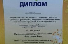 Городской конкурс авторских проектов тимуровских отрядов 31.10.2018 Ребята тимуровского отряда «Новые тимуровцы» под руководством Галихановой М.И. приняли участие в городском конкурсе авторских социальных проектов тимуровских отрядов «Доброгод» и заняли почетное II место. Наши поздравления!!!