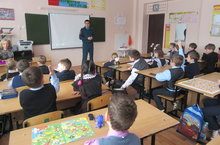 Встреча с представителями МЧС 17.03.2016 Организована встреча с сотрудниками МЧС для 1-ых классов. Проведена беседа по правилам техники безопасности с электрическими и газовыми приборами. Ребята просмотрели мультфильм «Как вести себя при пожаре?» А также провели учебную эвакуацию.