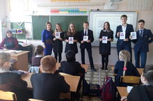 Республиканская акция "Мин татарча сөйләшәм" 10.03.2016 Ученики 8в класса под руководством Шаесламовой Г.И. приняли участие в республиканской акции "Мин татарча сөйләшәм".