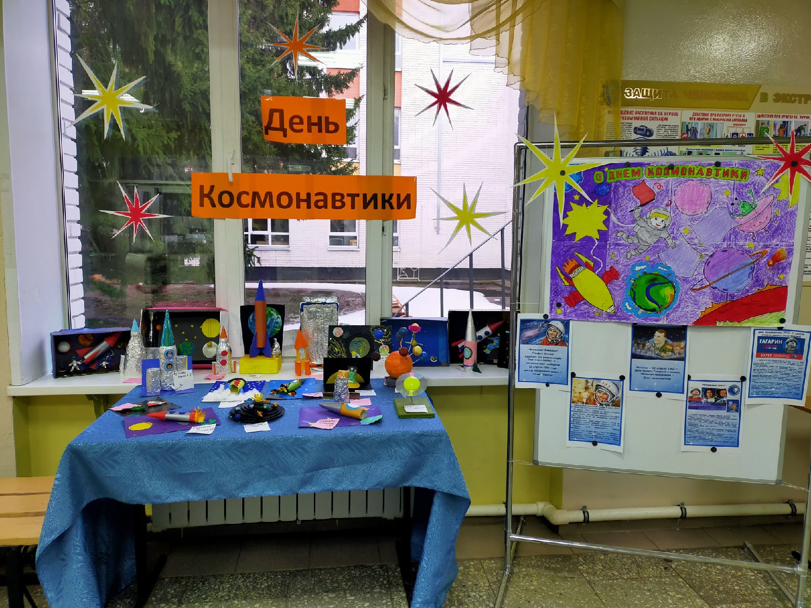 Выставка поделок и плакатов ко дню космонавтики