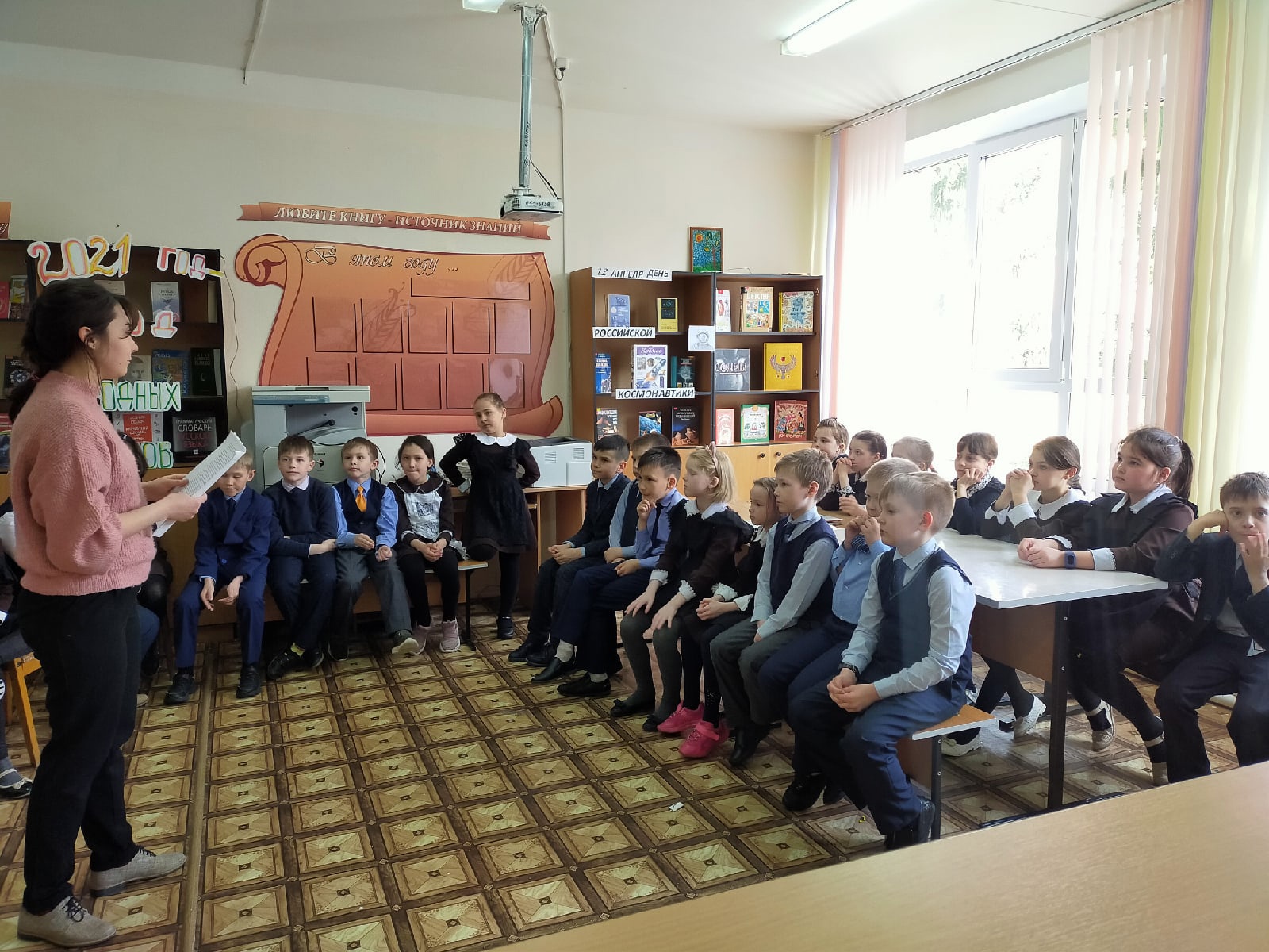 Опубликовано: 12.04.2021Ко дню первого полета человека в космос - 12 апреля был проведен библиотечный урок по теме "Дорога к звёздам" для учеников 2-ых классов. Библиотекарь Искандарова Г.Р. познакомила ребят с историей становления советской космонавтики, ее первые шаги, приведшие к полету Юрия Гагарина в космос. Также, было рассказано о первой женщине-космонавте, о первом открытом выходе в космос. Для закрепления знаний, была проведена викторина, в которой были заданы вопросы по теме урока. Целью урока было закрепление и приобретение новых знаний о космонавтике. После урока детям представили книжную выставку. Учащиеся были активны и любознательны.