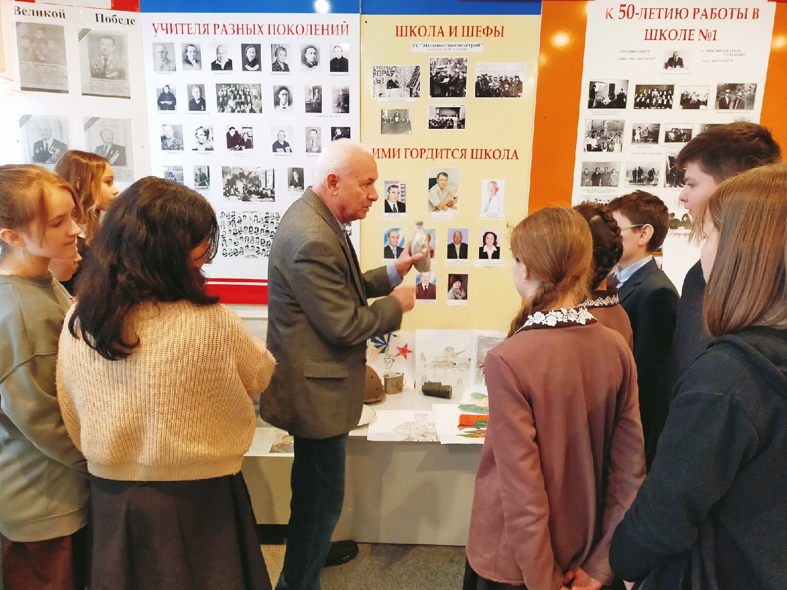 Опубликовано: 09.12.2021В рамках проведения Декады героев Отечества 9 декабря 2021 года в «Музее истории школы №1» прошла выставка «Наши герои». Выставку проводил руководитель музея Галеев Ш.К. Ученики, по экспонатам музея, познакомились с учителями школы прошедшие Великую отечественную войну. Ребята увидели находки, которые были найдены при раскопках на Мамаевом кургане поисковиками. Также ребятам представлены рисунки, посвященные военной теме. Учащиеся выразили свою огромную благодарность за организацию выставки.