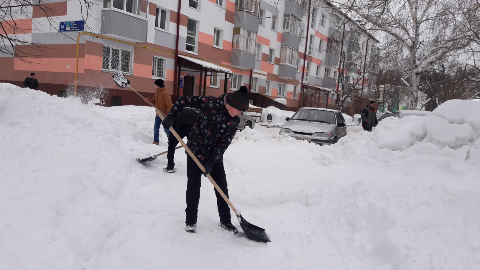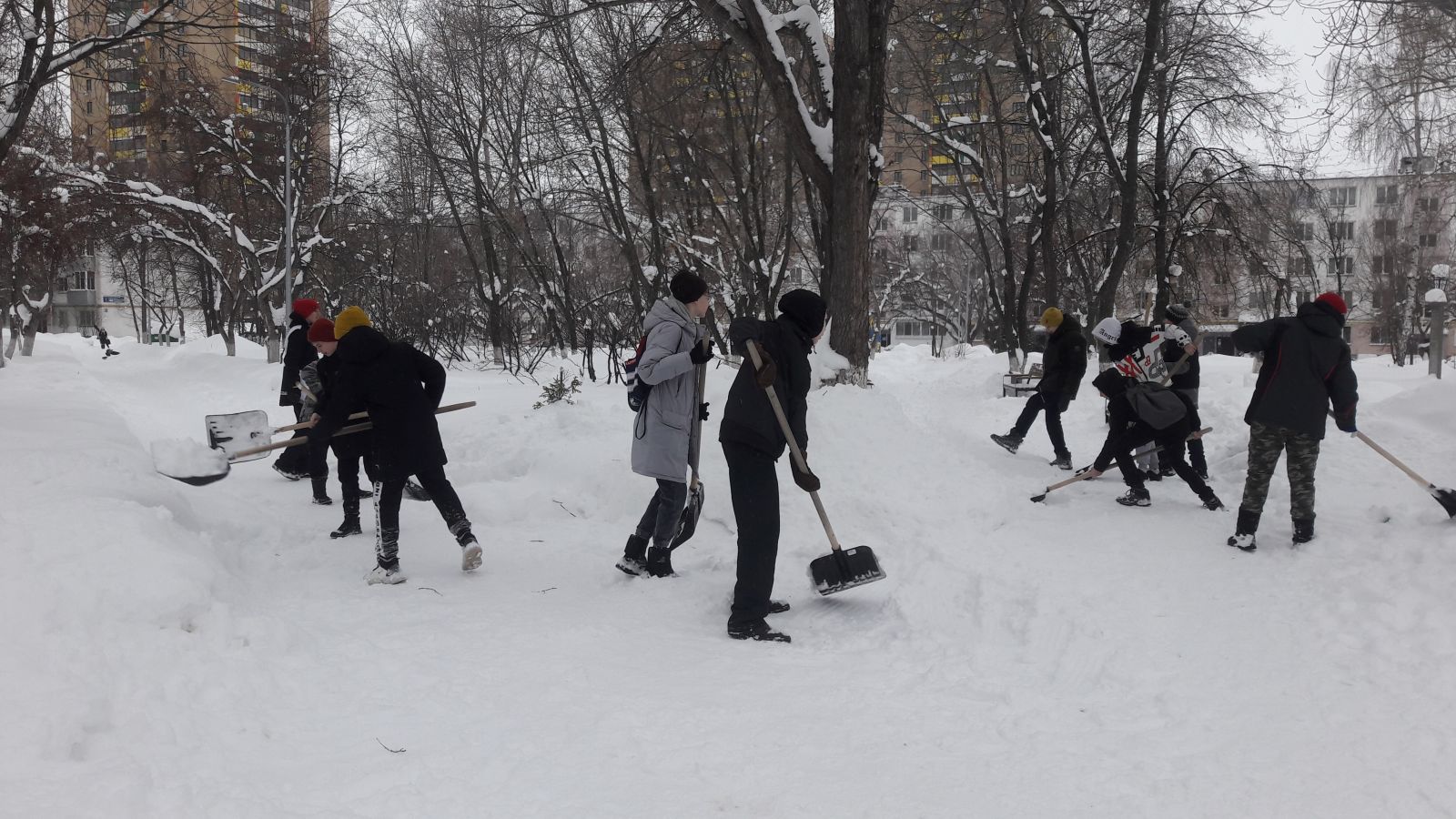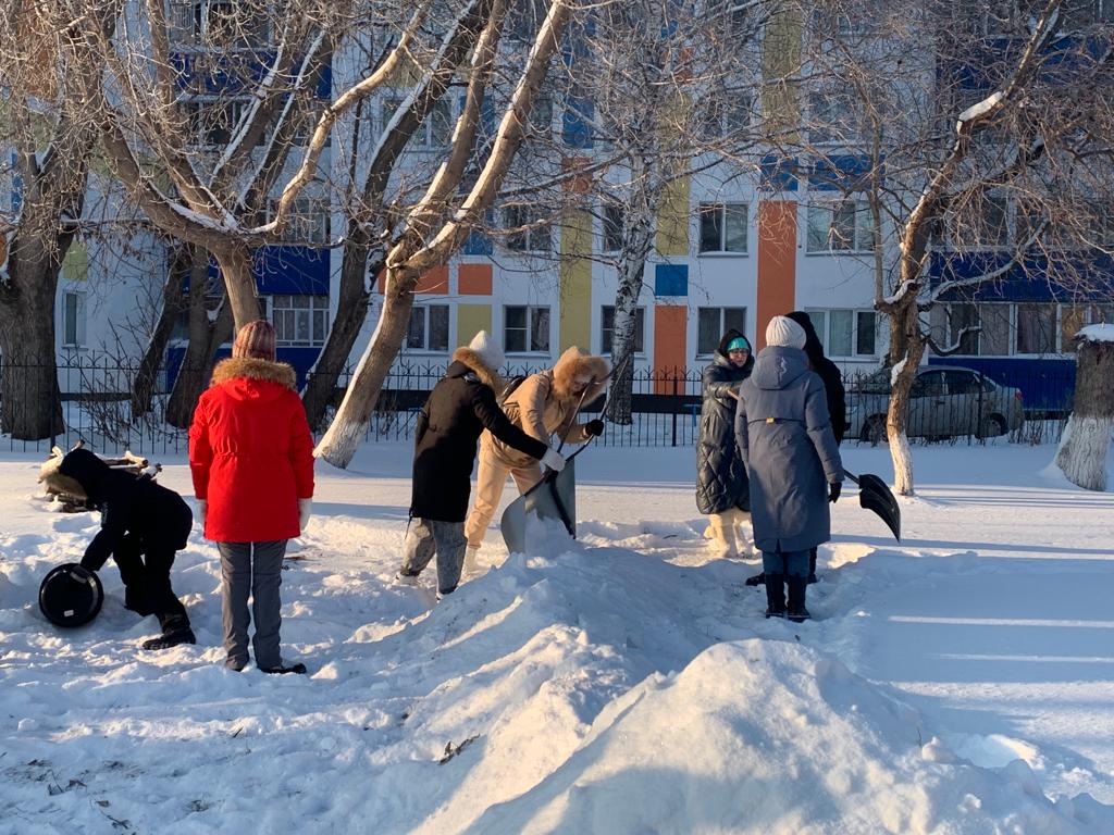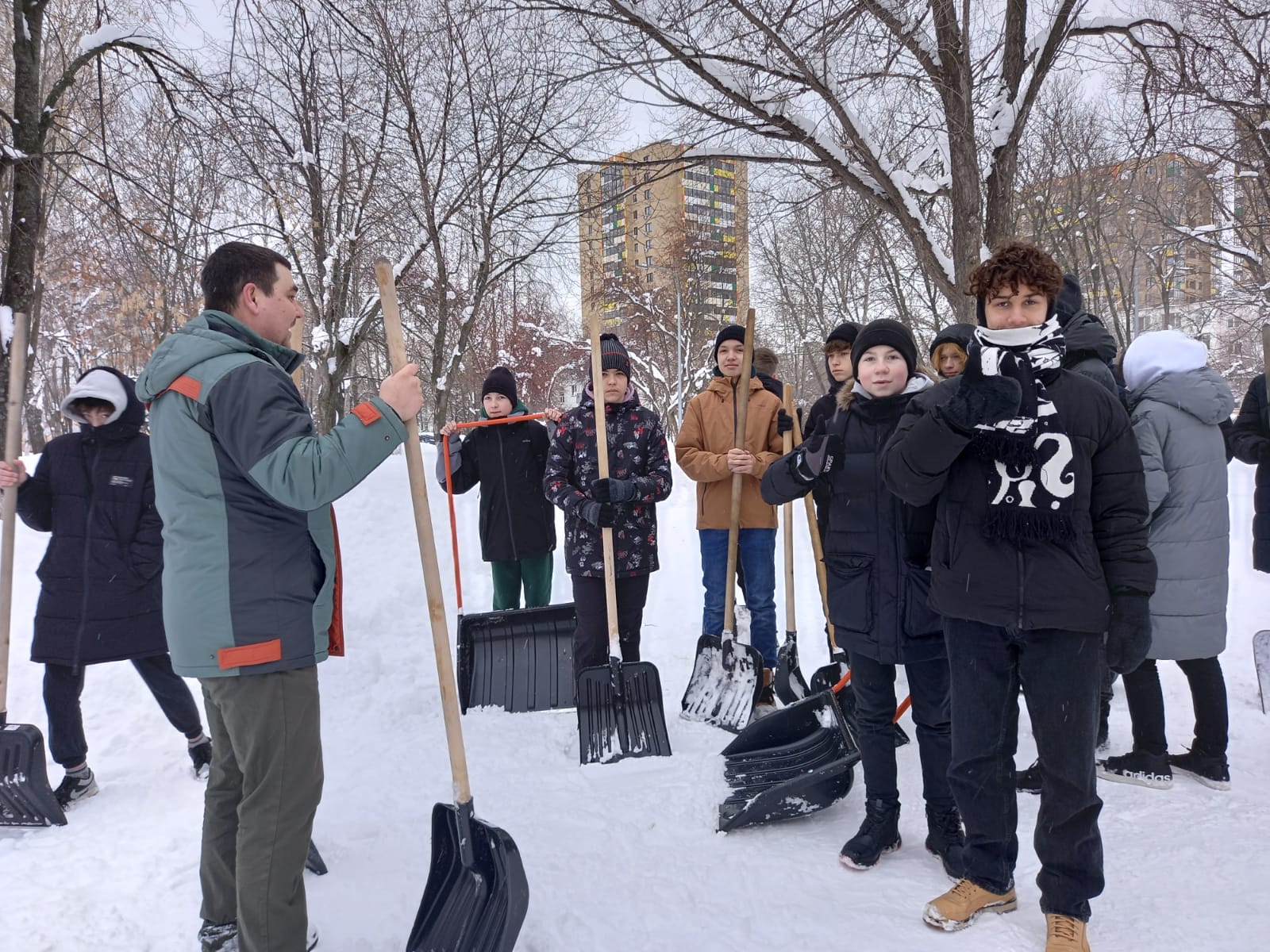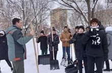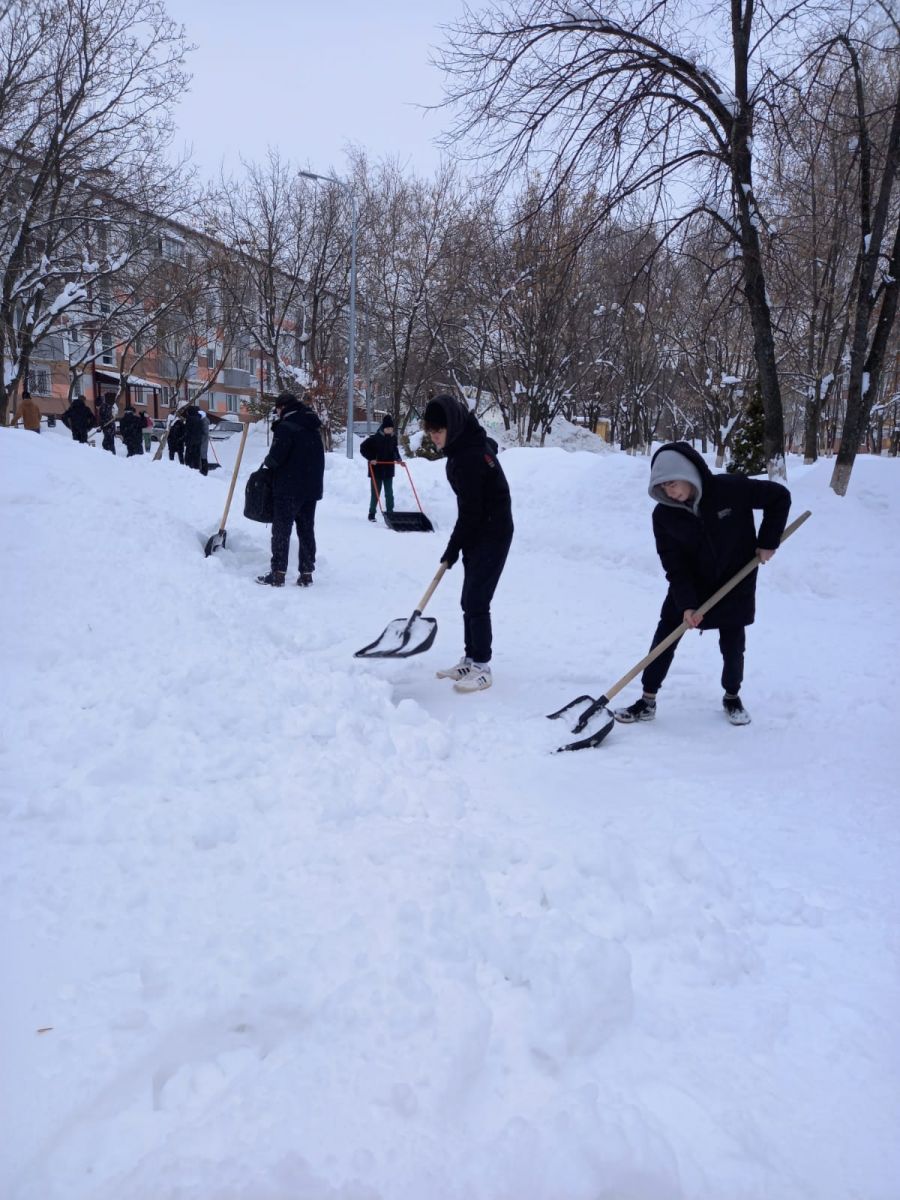 Волонтеры на уборке снега на Аллее Славы п.ГЭС