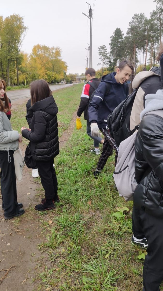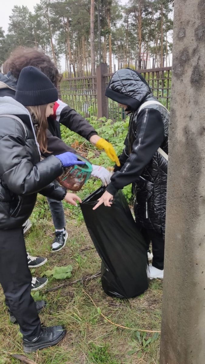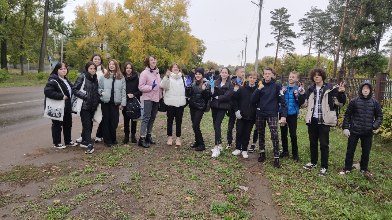 Учащиеся школы 9В класса средней школы № 10 произвели уборку по территории позле Памятника Вечного огня.