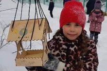 Учащиеся 1д класса изготовили совместно с родителями кормушки. Все кормушки повесили на школьном дворе. Ежедневно первоклассники подкармливают птиц, подсыпая зерна и кусочки хлеба в изготовленные кормушки.