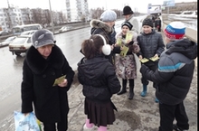 Члены отряда раздали листовки пешеходам о соблюдении безопасности на дороге.