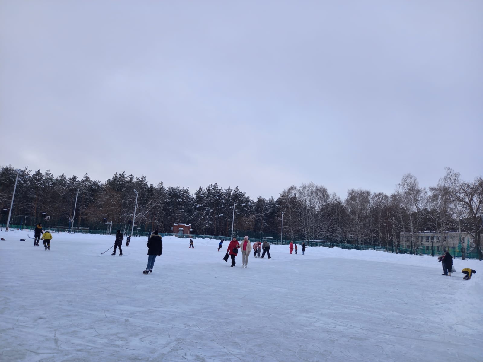 Репортаж со школьного катка: удобно и весело всем, и тем, кто делает первые шаги, и хоккеистам, родителям и бабушкам и дедушкам.