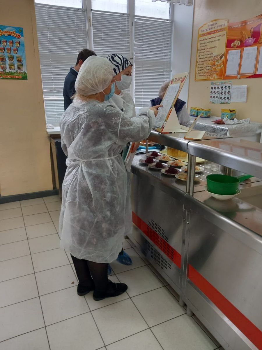 Комиссия по контролю качества питания учащихся посмотрела работу дежурных классов и работников школьной столовой, организацию питания учащихся 2 смены.