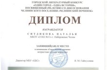 Победы Ситдиковой Натальи Викторовны в городских литературных конкурсах 20.04.2016