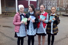 Учащиеся школы приняли участие в «Дне добрых начинаний», раздавали листовки во дворе школы . -