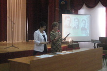 21 февраля учащиеся 10-ого класса приняли участие в городском митинге , посвящённом 23 февраля, который проходил в пос.Орловка около памятника «Памяти павшим».