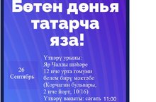 Без,12 нче мәктәп укучылары,әти-әниләрне,әби –бабайларны,шәһәрдәшләрне “Татарча диктант” акциясендә актив катнашырга чакырабыз.