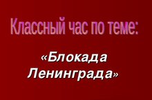 Классные часы на тему "Блокада Ленинграда" 26.01.2019