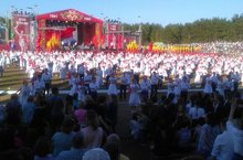 Выступление учащихся на праздничном мероприятии на Майдане посвящённом 74 -й годовщине Великой Победы 09.05.2019