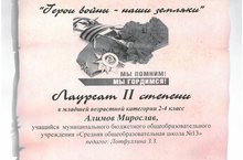 По результатам городского конкурса презентаций «Герои войны- наши земляки» ученик 3Б класса нашей школы Алимов Мирослав получил грамоту Лауреата II степени! Поздравляем Мирослава и его руководителя - учителя татарского языка и литературы Лотфуллину Зульфию Зайтуновну 17.04.2019