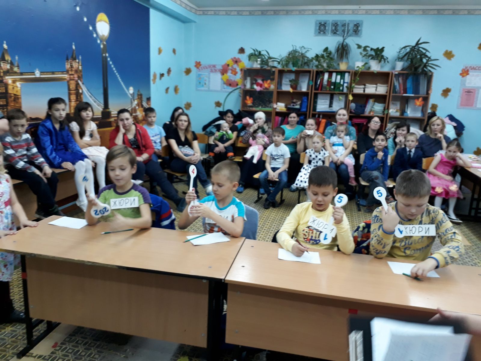 20 октября во 2 классе совместно с родителями проводился конкурс "Мисс и Мистер Осени". К конкурсу приготовили вместе с родителями костюмы для участников конкурса и оформили кабинет осенними листьями и подделками. В конкурсе участвовало 5 пар, оценивал их 4 члена жюри. Победила дружба и в конце все участники получили грамоты. После конкурса было совместное чаепитие и детская дискотека. И ребятам и родителям все понравилось. В конце классный руководитель Алсу Мирзануровна поблагодарил всех участников и их родителей.
