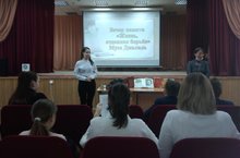 12.02.2021 в актовом зале МБОУ СОШ N13 специалистом Центральной Детской Библиотеки проведён классный час "Жизнь отданная борьбе. Муса Джалиль" для учащихся 7х классов.