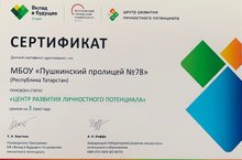 В июне состоялось подведение итогов конкурса формирования сети центров развития личностного потенциала образовательных организаций РФ. Единственной в РТ образовательной организации МБОУ «Пушкинский пролицей №78» был присвоен статус «Центр развития личностного потенциала».