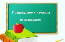 Третья четверть-прекрасная возможность взяться за учебу как следует,в полную силу! Трудолюбия и усердия,удачи и успехов вам,чтобы учеба давалась вам легко и приносила истинное наслаждение!И пусть все ваши дела и поступки будут только на "отлично" и "хорошо". Новых достижений и побед в новой учебной четверти наступившего 2022 года.