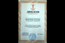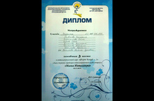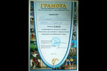 Управление образования Исполнительного комитета города Набережные Челны Муниципальное образовательное учреждение дополнительного образования детей Центр детского творчества № 16 "Огниво" наградил Дипломом 1 степени Никитину Анастасию ученицу 8 "Б" класса ООШ № 14
