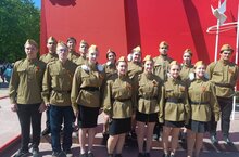 организовали акцию по раздаче Георгиевских ленточек прохожим.