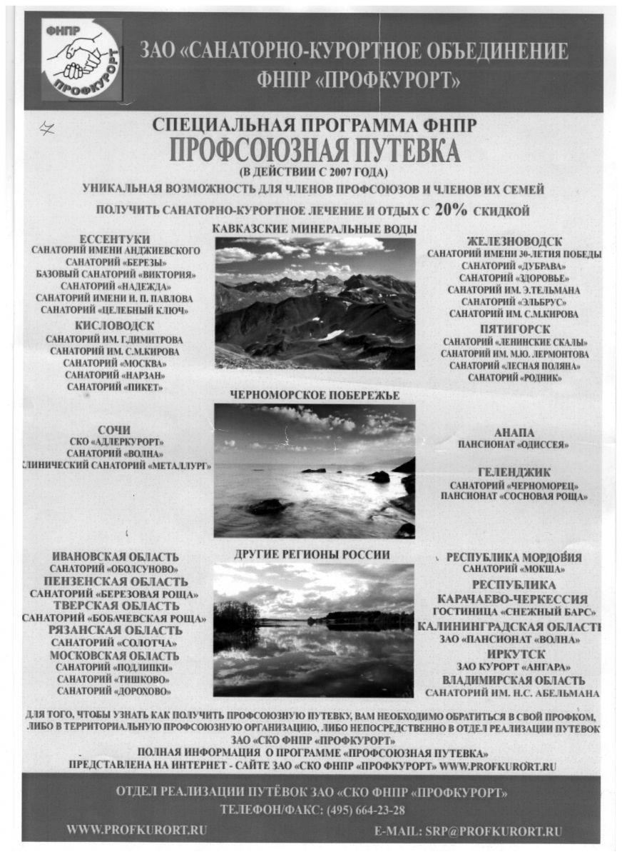 Информация о возможностях оздоровления и отдыха членов профсоюза