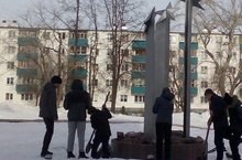 Ученики 7б класса на субботнике у памятника Афганцев 01.04.2017