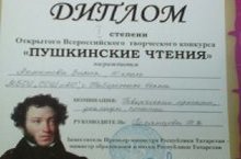 Ахметова Зилия ученица 10а класса заняла 1 место во Всероссийском творческом конкурсе "Пушкинские чтения" 31.03.2017