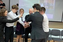 "Дискуссионная площадка" для ребят старших классов. Наш гость: председатель правления Ассоциации «Промышленный кластер РТ», выпускник нашей школы Майоров Сергей Васильевич. Ребята могли задать любой вопрос и получить развёрнутый ответ. Встреча прошла в тёплой и познавательной обстановке.