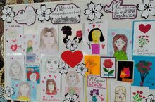 Мамы, как пуговки: на них всё держиться. Детки подготовили выставку рисунков для мам. Как красиво мы рисуем.