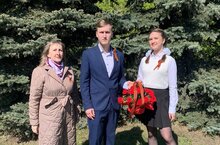 11нче сыйныф укучылары Мәңгелек ут янындагы һәйкәлгә чәчәкләр салдылар.